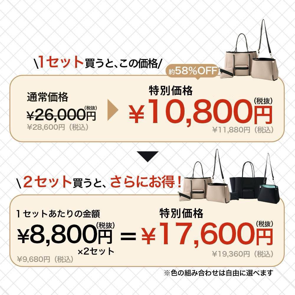 オシャレと機能性を兼ね備えた大型トートバッグ豪華3点セットが、今ならなんと約58%オフでご購入いただけます😳✨